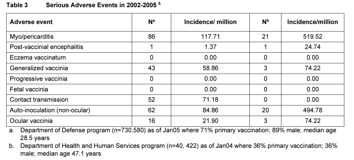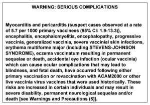 En revanche la FDA a prévu une notice très détaillée en particulier sur les effets secondaires de la vaccin ACAM2000, sans doute pour des raisons juridiques, mais qui a l’avantage de donner l’échelle des risques de ce vaccin. Y compris sur un problème actuel majeur : vacciner chez l’adulte et non avant 2 ans multiplie au moins par 10 la fréquence des accidents graves.
